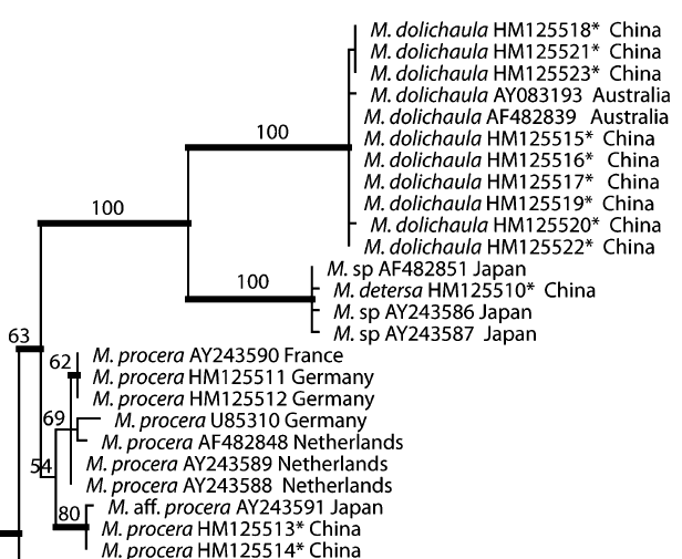 Macrolepiota dolichaula is a large mushroom that can often be seen in open paddocks from some distance away. It occurs in the warmer regions of Australia such as the North Coast of New South Wales and Queensland. It also occurs in other countries such as Vietnam, Northern Thailand and China. In all those places it is also considered an edible species. Genetically, the specimens from Australia form a monophyletic clade with the species from China. DNA Barcoding shows a 100% match between specimens from Australia and China. This is shown by specimens lodged by the mycologist who specialises in this genus, Else Vellinga. Genetically, it sits close to Macroplepiota procera, with which it is often confused.