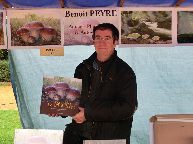 While at the annual mushroom festival at Correze in France, I met a man with a remarkable enthusiasm for mushrooms. He has produced some beautiful books featuring mushrooms, two of which I purchased. One was a book of poems illustrated with mushrooms and the other was a coffee table book describing the work of a variety of artisans who produce mushrooms from various media. He also has a range of images of various sizes featuring mushrooms. A truly remarkable man.